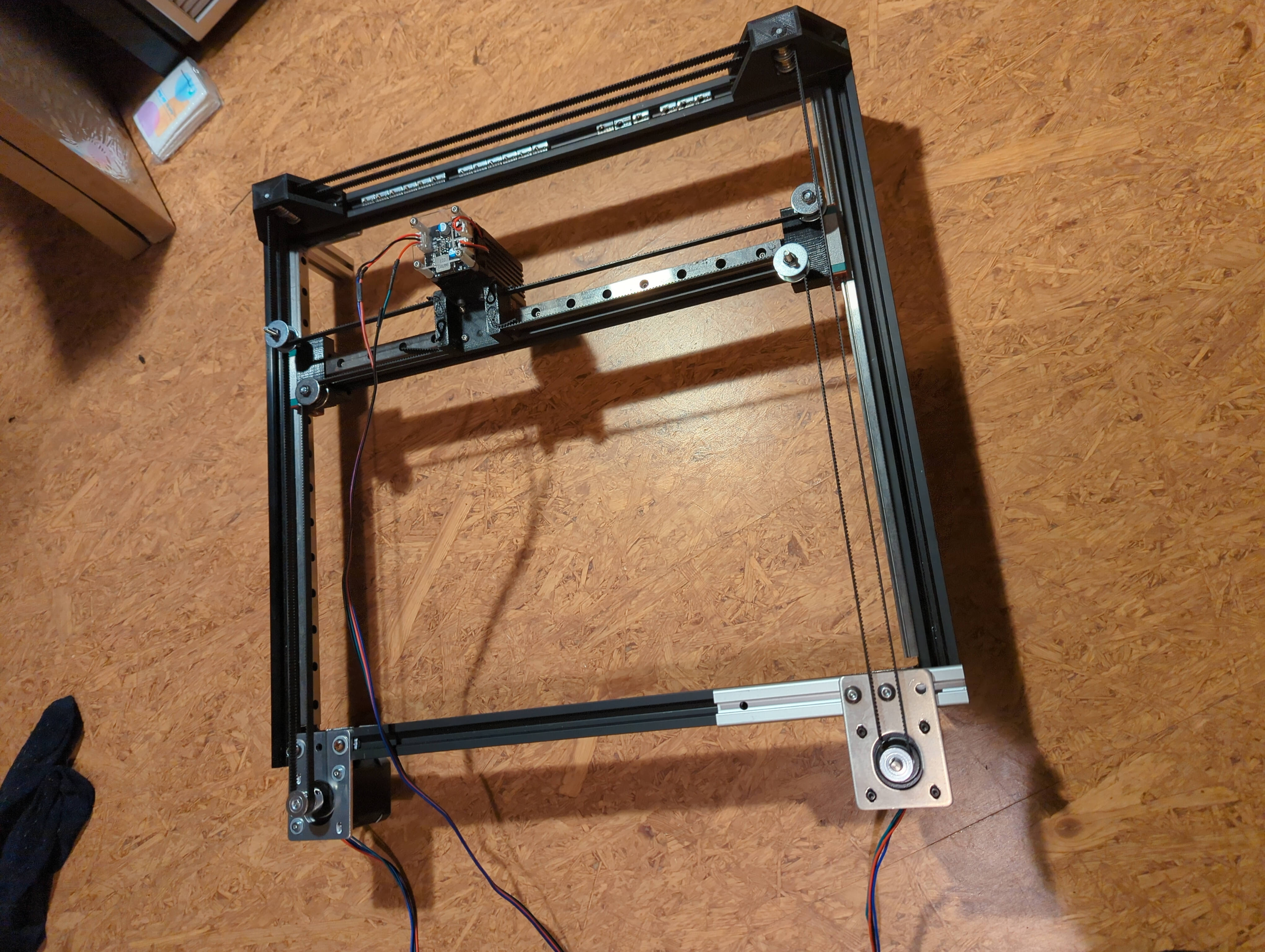 The Retina Remover 9000 was a school project for which a friend and I designed and built a laser engraver from scratch. It uses a 2W china 450nm diode laser source with FluidNC Firmware and a CoreXY motion system to burn decorative patterns into wood, cardboard, plastic and more.